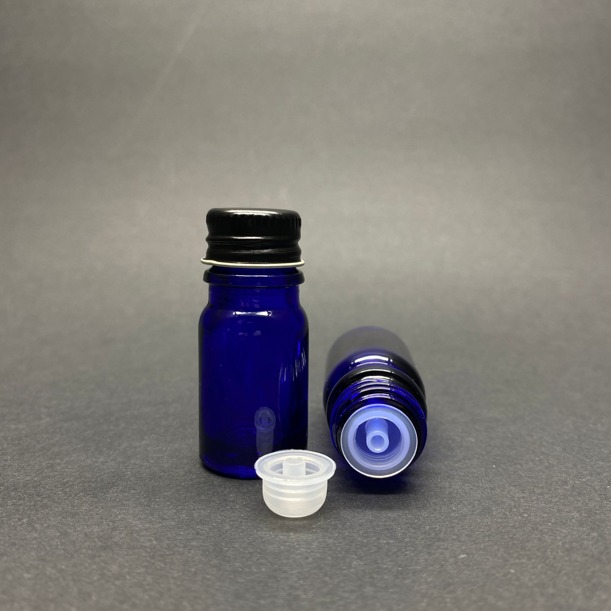 5 CC MAVİ CAM ŞİŞE - METAL SİYAH CONTALI KAPAKLI - KÖR TIPALI CAM ŞİŞE - 5 ML MAVİ CAM ŞİŞE - KAPAK + KÖR TIPA - 510 adet