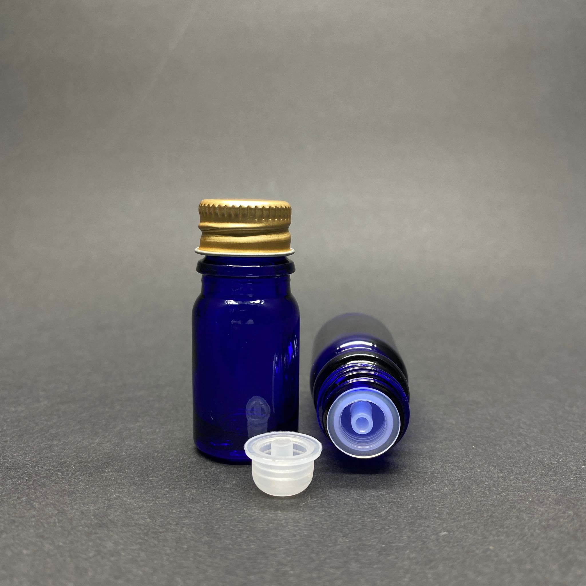 5 CC MAVİ CAM ŞİŞE - METAL GOLD CONTALI KAPAKLI - KÖR TIPALI CAM ŞİŞE - 5 ML MAVİ CAM ŞİŞE - KAPAK + KÖR TIPA - 510 adet