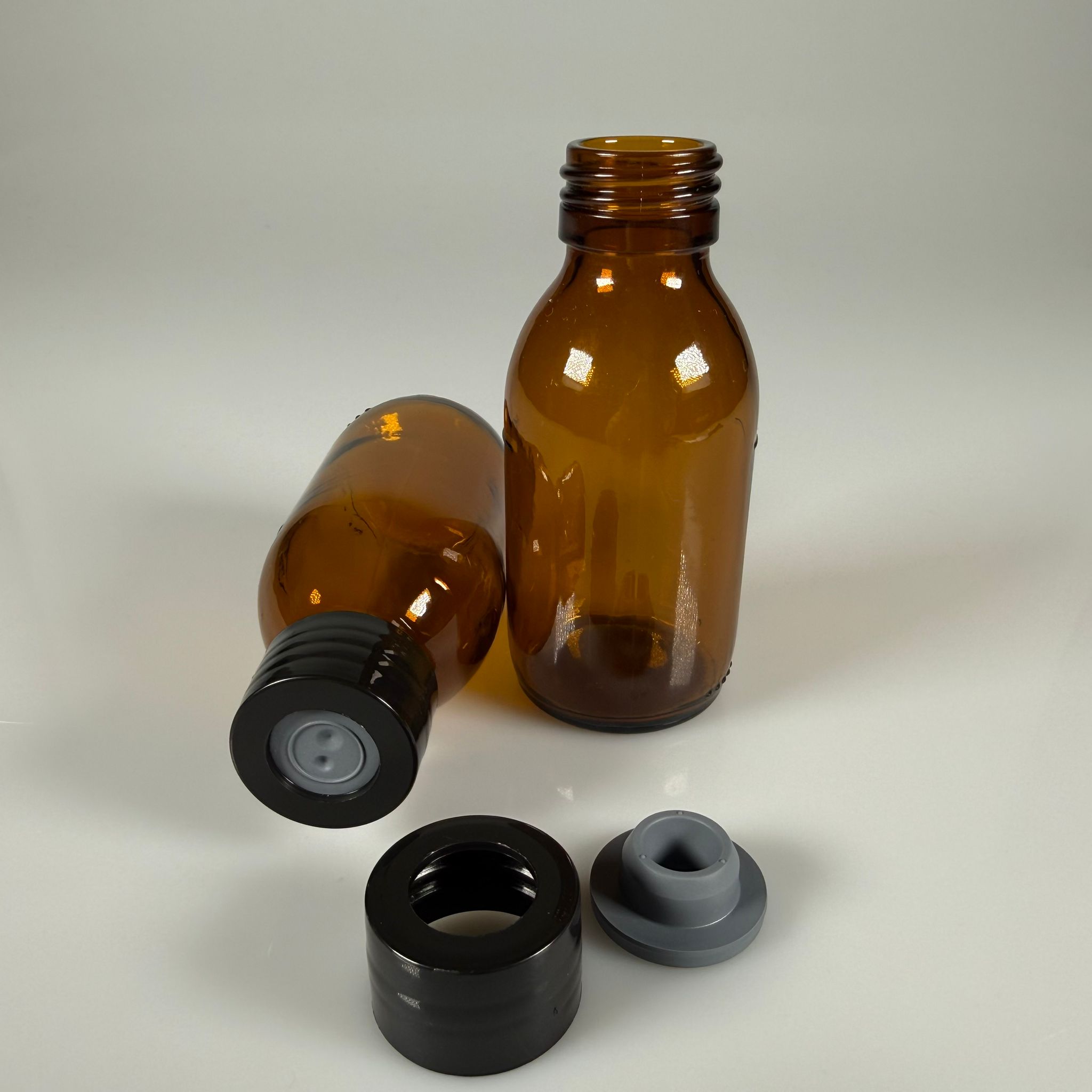 FLAKON ENJEKTÖR SERUM ŞİŞESİ - 100 ML AMBER ECZA CAM ŞİŞE + VİDALI DELİKLİ KAPAK (ELLE ÇEVİREREK KAPANIR) + KAUÇUK BUTİL TIPA TAKIM - 208 adet