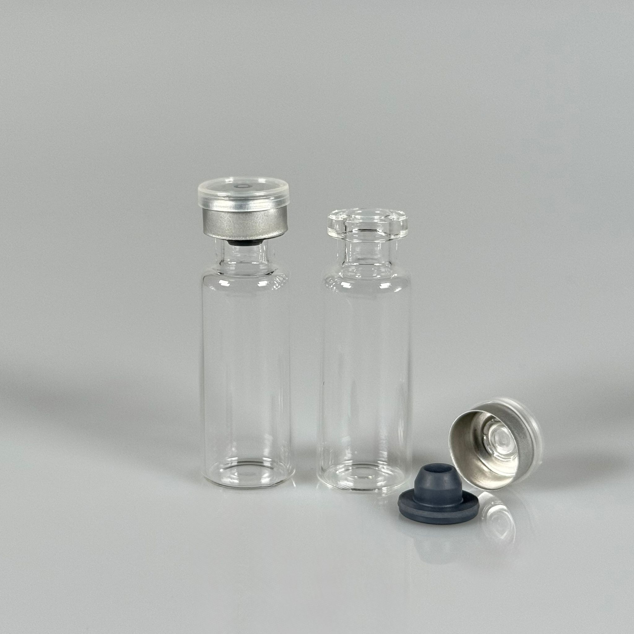 2 ML vial flakon şişe - 13 ağız 2 cc şeffaf cam ilaç şişesi + kauçuk butil enjektör tıpası + gümüş alüminyum kapaklı takım - 1156 adet