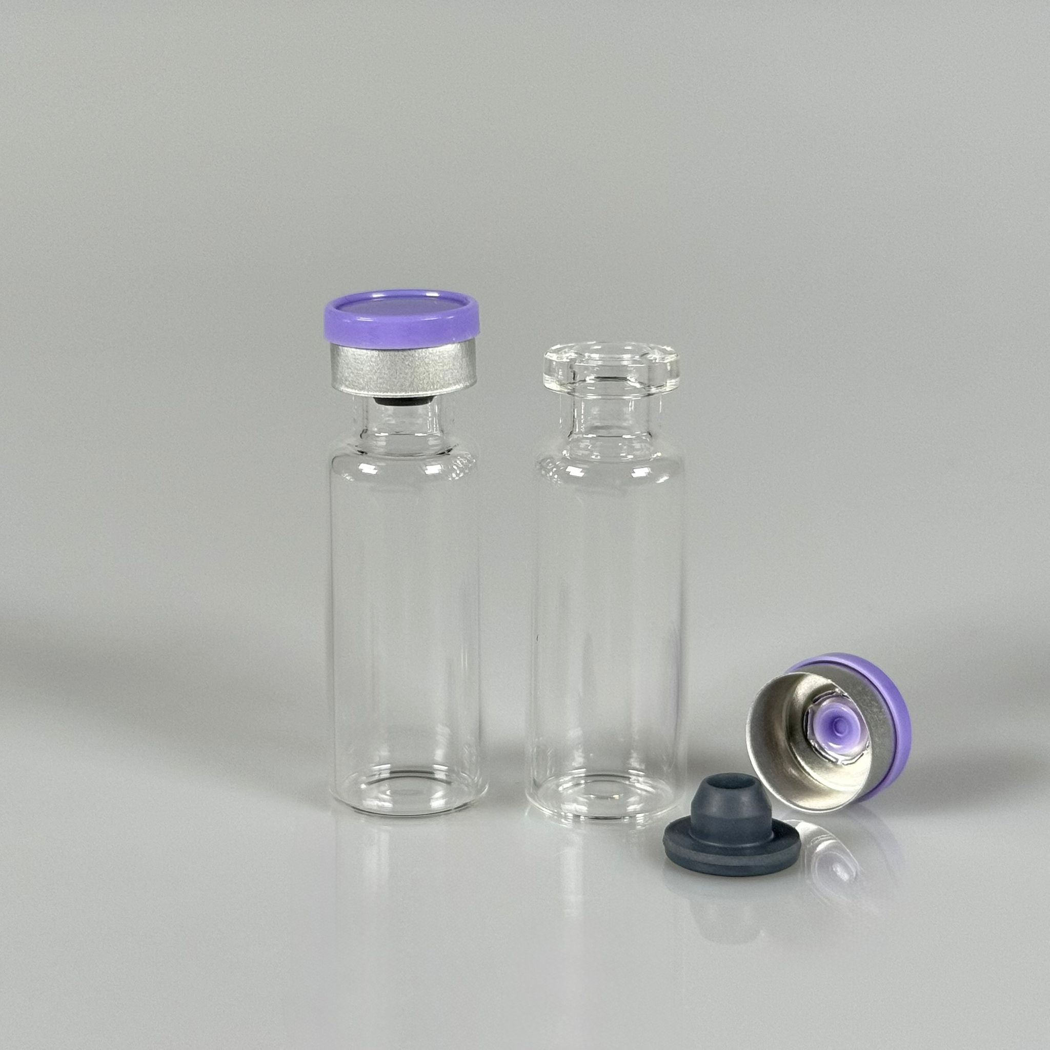 4 ML vial flakon şişe - 13 ağız 4 cc şeffaf cam ilaç şişesi + kauçuk butil enjektör tıpası + mor alüminyum kapaklı takım - 459 adet