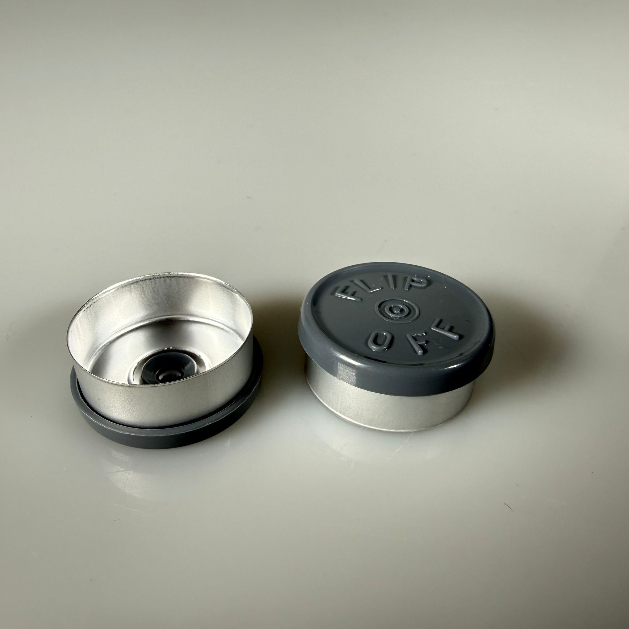 PENİSİLİN ALÜMİNYUM FLAKON KAPAK GRİ ÜSTÜ YAZILI - 20 MM DÜZ RENKLİ FLİP-OFF KAPAK - 1000 adet