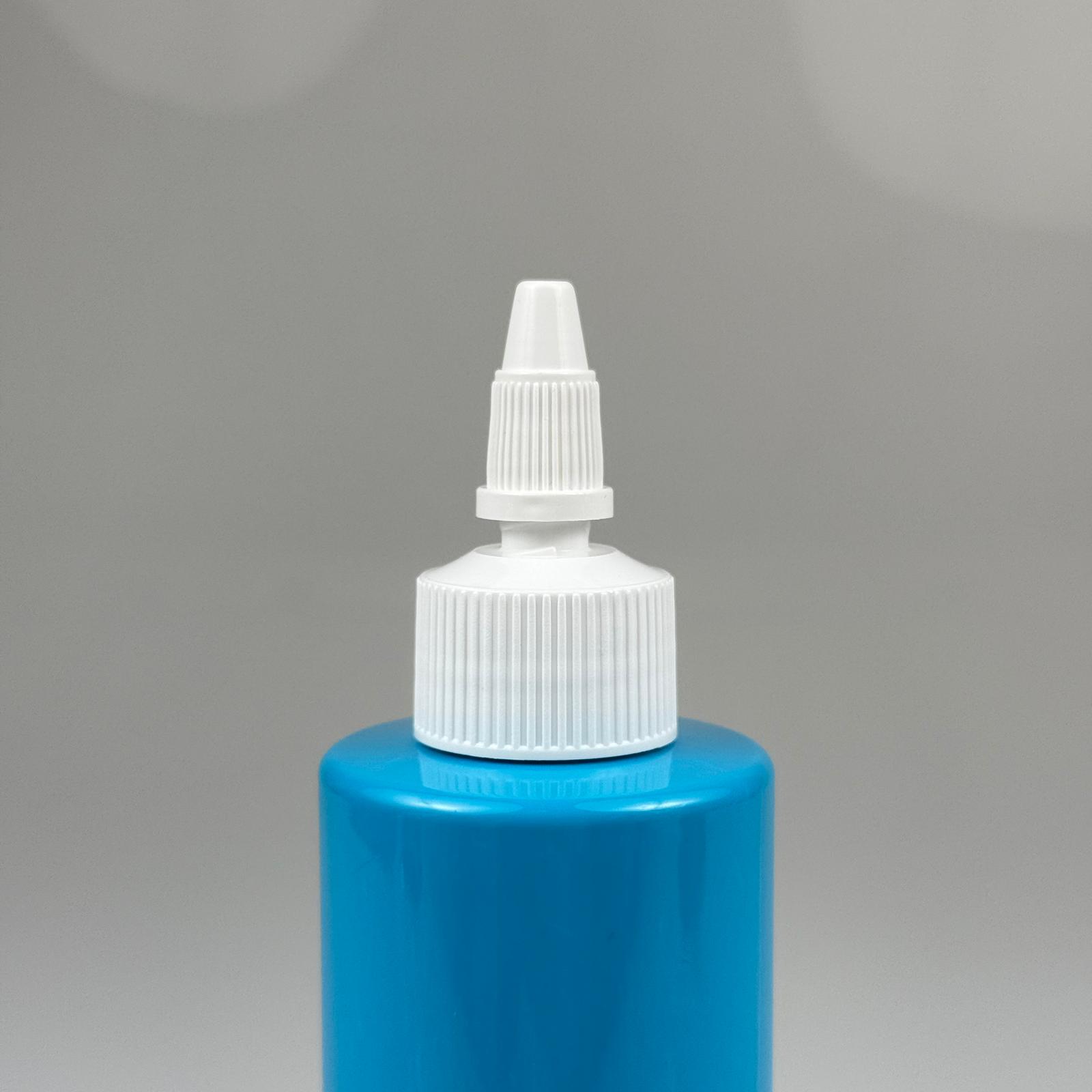 YAĞ, SOS, ACI SOS, SİRKE, SRIRACHA, MÜREKKEP, TUTKAL AKITICI VB BOŞ ŞİŞELERİ - BEYAZ SİVRİ TWİST AKITICI KAPAK + 200 ML MAVİ KÜT SERT PET PLASTİK ŞİŞE TAKIM - 390 adet