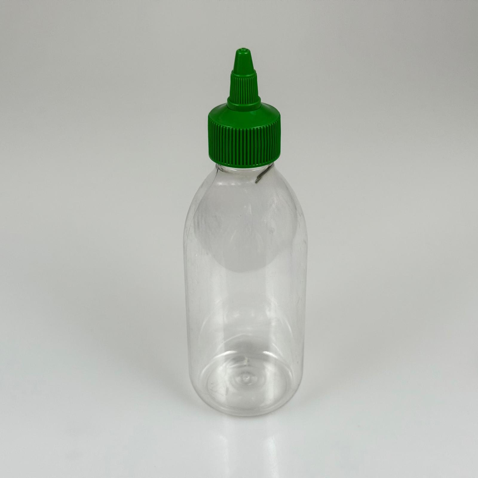 ZEYTİNYAĞI, SOS, ACI SOS, SİRKE, SRIRACHA VB BOŞ ŞİŞELERİ - YEŞİL SİVRİ TWİST AKITICI KAPAK + 250 ML ŞEFFAF FRANSIZ PET PLASTİK ŞİŞE TAKIM - 90 adet