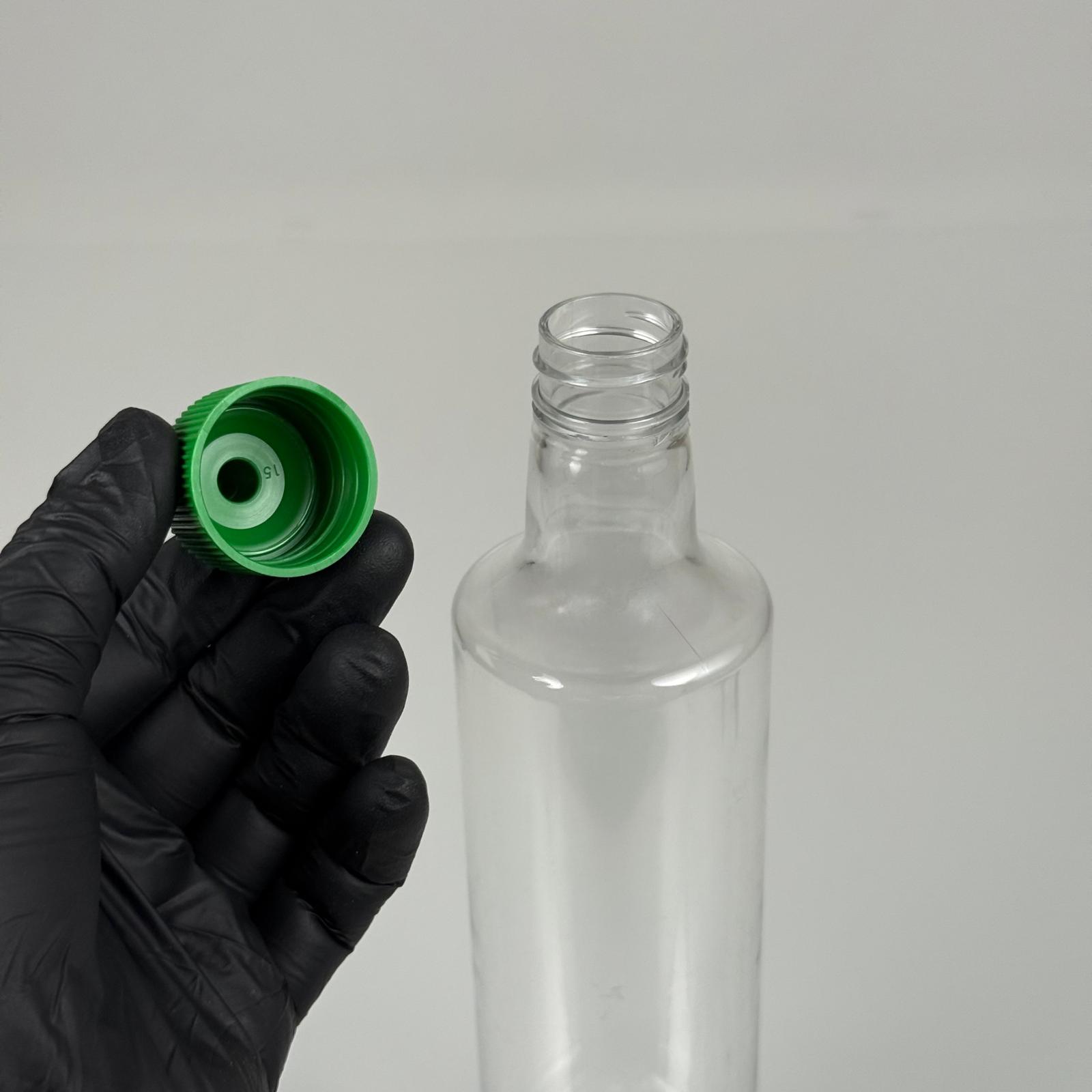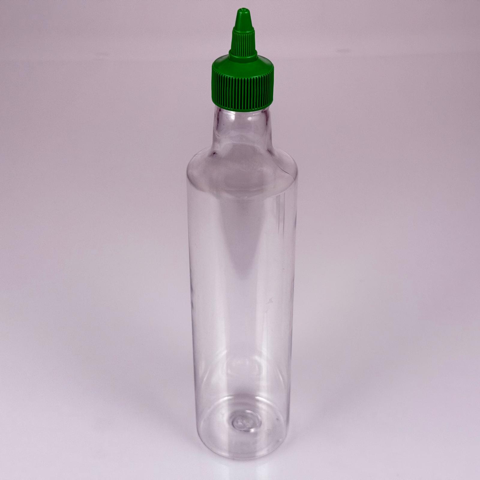 ZEYTİNYAĞI, SOS, ACI SOS, SİRKE, SRIRACHA VB BOŞ ŞİŞELERİ - YEŞİL SİVRİ TWİST AKITICI KAPAK + 500 ML ŞEFFAF DORİKA PET PLASTİK ŞİŞE TAKIM - 126 adet
